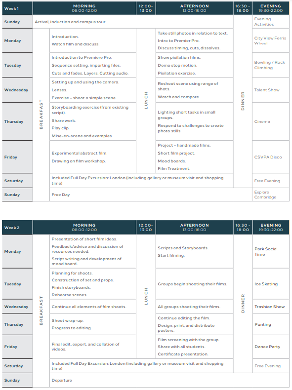 Las excursiones pueden incluir visitas al Victoria and Albert Museum, Tate Modern, Tate Britain, el Museo de la Ciencia, el Museo de Historia Natural o la playa de Southwold.