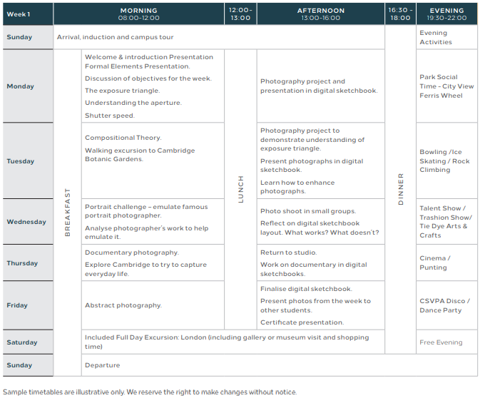 Este curso abarca más de 25 horas lectivas entre clases en el estudio y sesiones fotográficas en Cambridge y culminará con una presentación final.